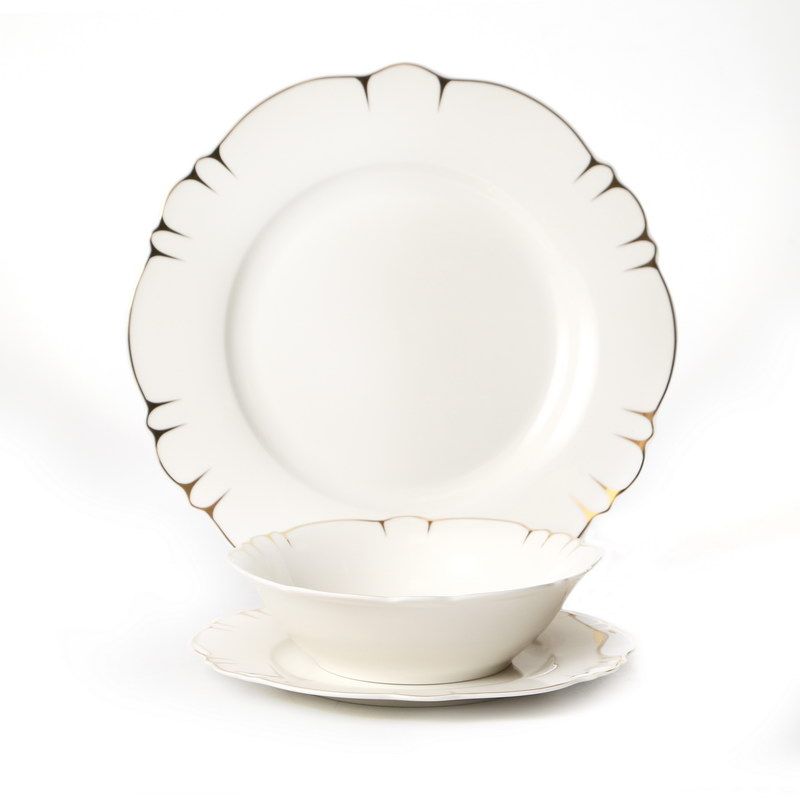 מערכת אוכל 18 חלקים Helen לבן/ זהב קוטר 28/18/22 ס"מ New Bone China