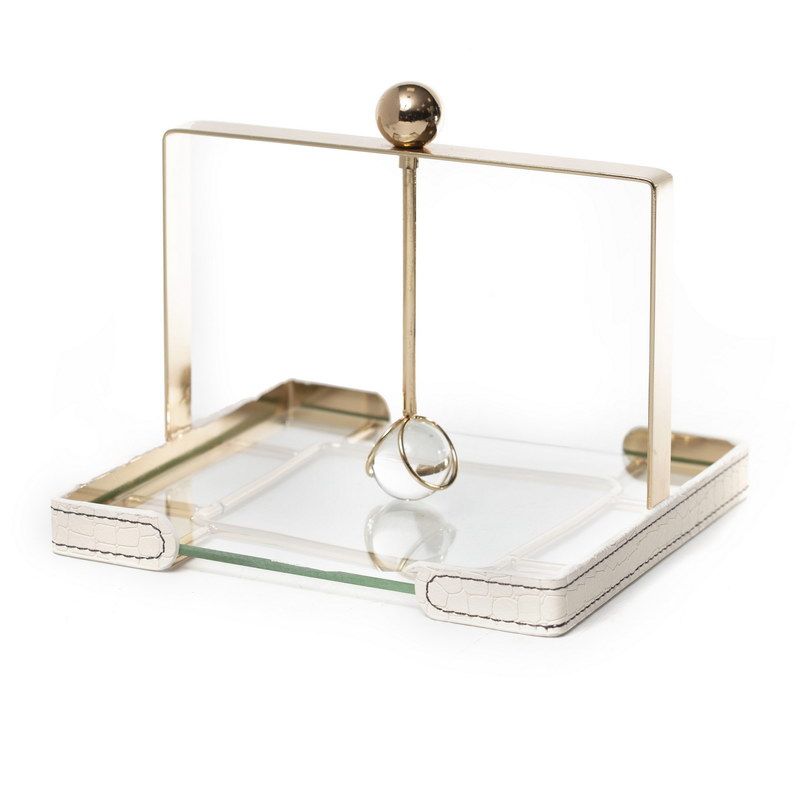 מפיון זכוכית לבן PU מסגרת זהב ידית נשיאה כדורי קריסטל 19/19 גובה 16 ס"מ