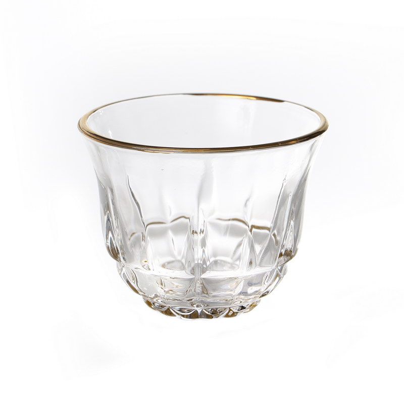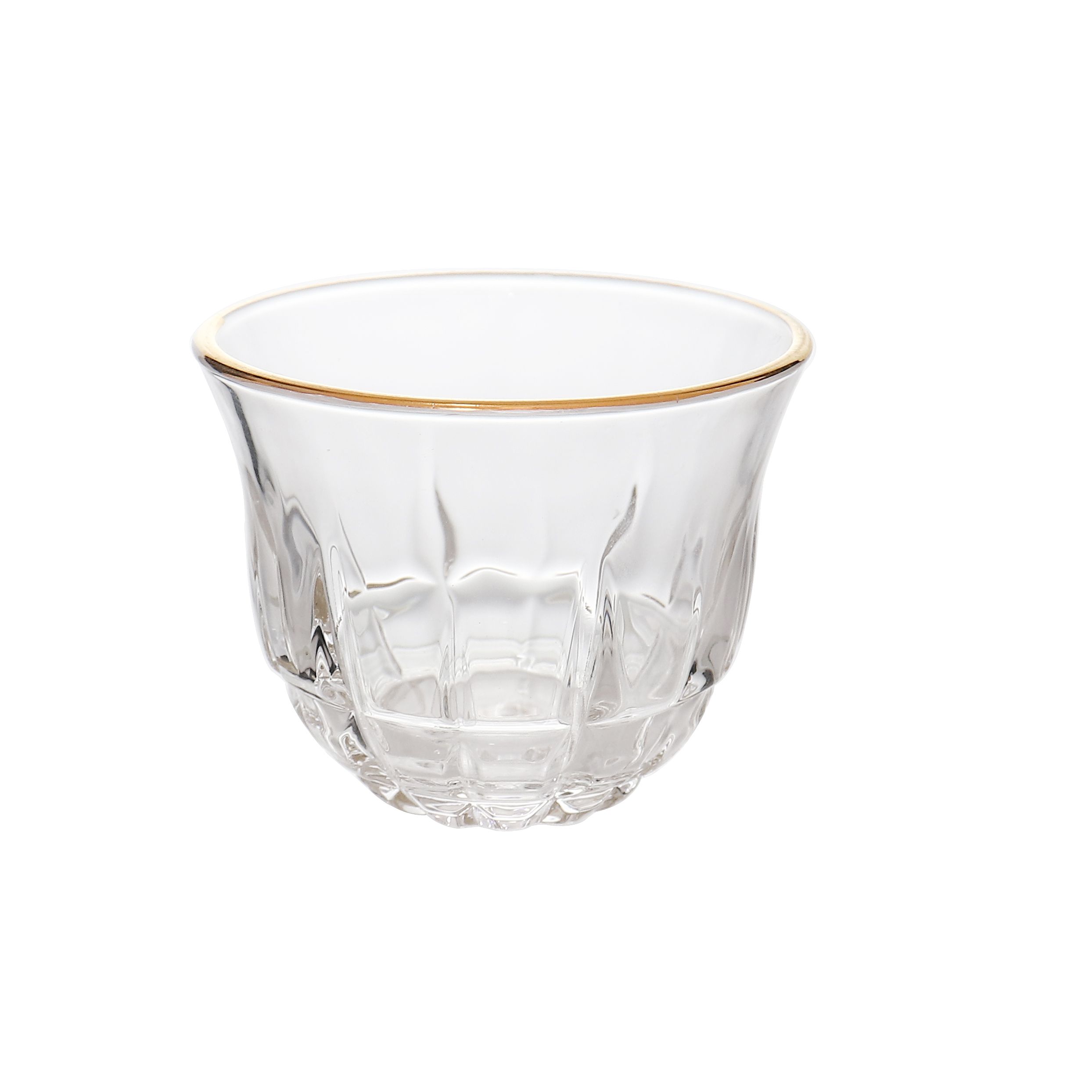 סט 12 כוסות קפה בדואי זכוכית שקופה 60 מ"ל ופס זהב
