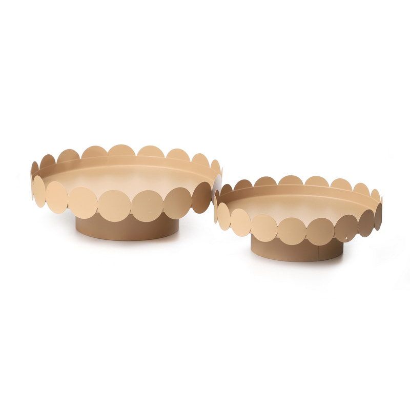 סט 2 מגשי מתכת בז' קטרים 30/25 ס"מ גבהים 10/8.5 ס"מ