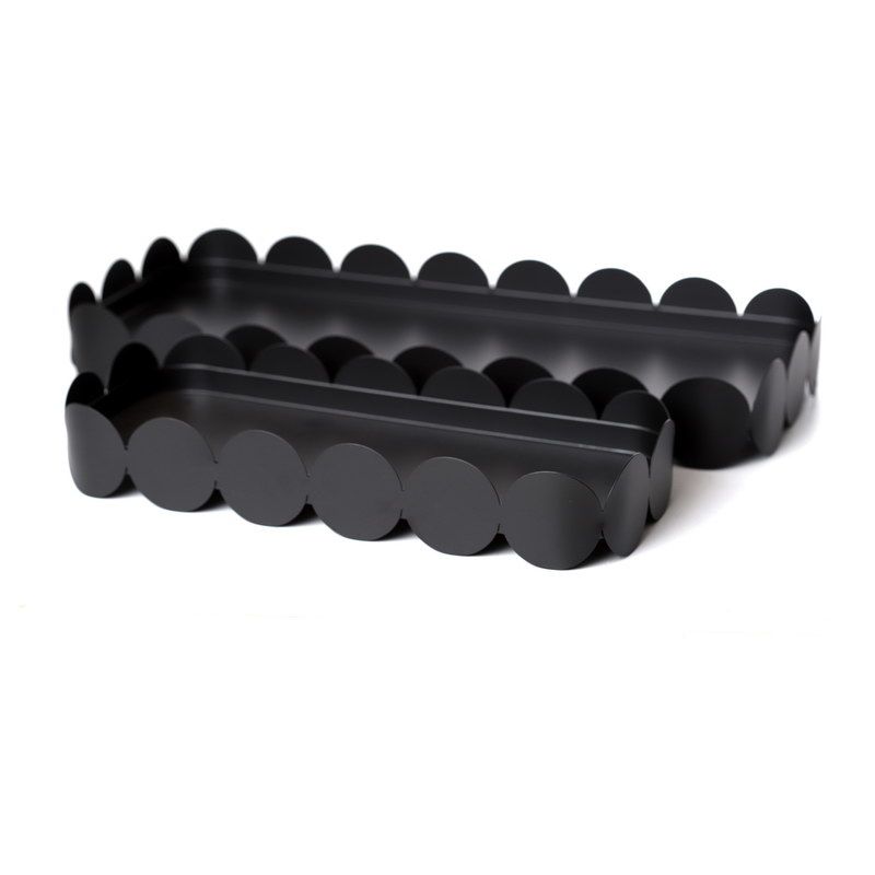 סט 2 מגשי מתכת מלבן שחור שוליים מקושתים 29/12 ס"מ 40/16.5 גובה 4.5 ס"מ