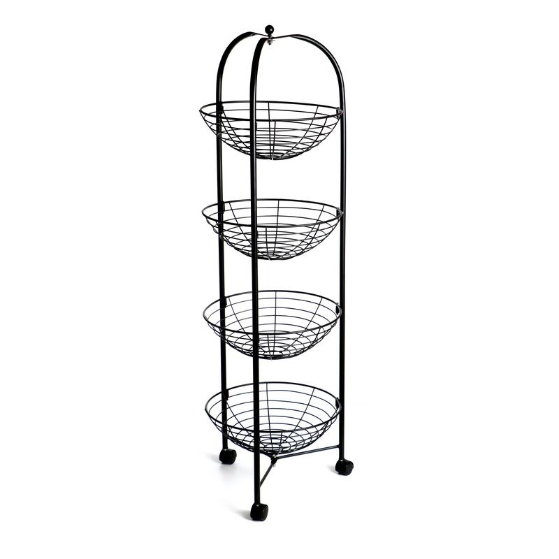 סט 4 עגלה לירקות עגולה 4 קומות שחור מט