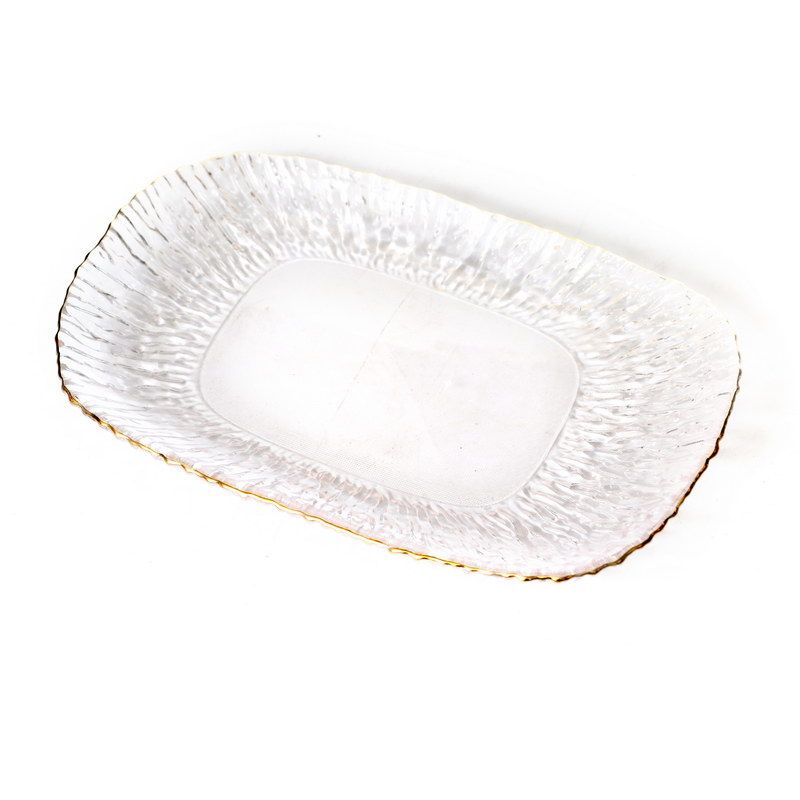 סט 4 צלחות מלבני 24/17 ס"מ זכוכית גבישי פס זהב/ שקופה