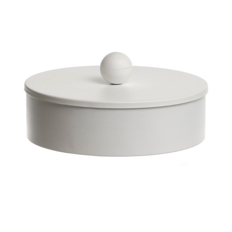 סט 4 קופסאות עגולות מתכת לבנה קוטר 27 גובה 11 ס"מ