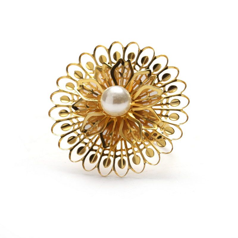סט 6 חבקים למפיות פרח זהב ופנינה