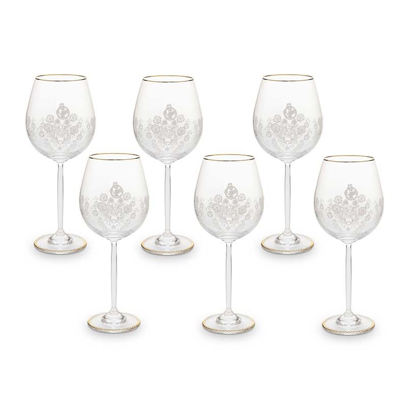 סט 6 כוסות יין בעיצוב פרחוני נקי ועיטורי זהב עדינים מסדרת FLORAL . משמש להגשת יין ומשקאות חריפים וקלים נוספים. יכול לשמש כאקססורי לעיצוב הבית. מותג: פיפ סטודיו..נפח: 360 מ"ל..מותג: פיפ סטודיו