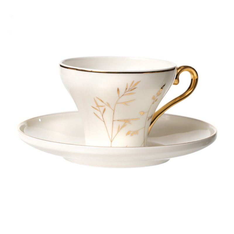סט 6 כוסות תה/תחתית Athen floral לבן/זהב 180 מ"ל New Bone China