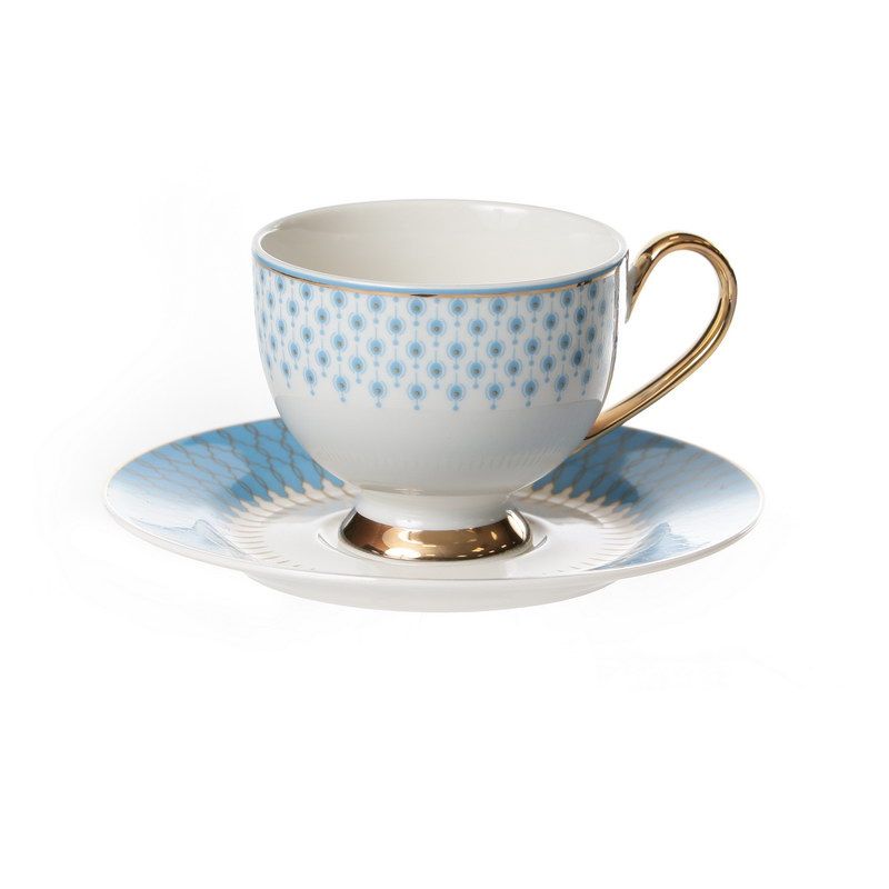 סט 6 כוס תה/תחתית Marine כחול/זהב 180 מ"ל New Bone China