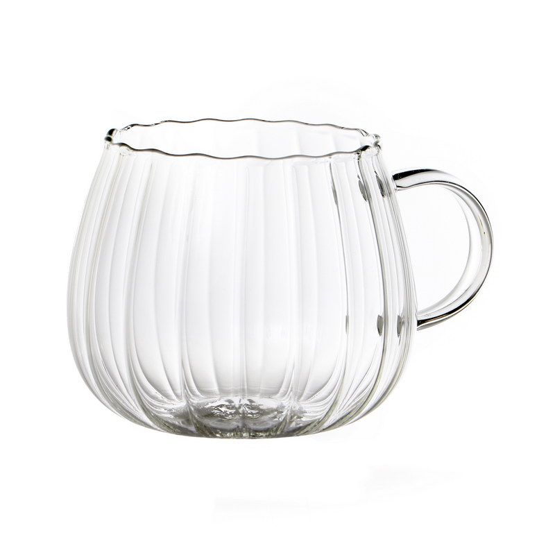 סט 6 מאגים זכוכית פסים שקופה וידית 400 מ"ל