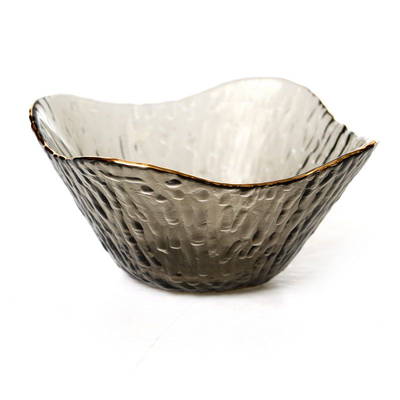 סט 6 קעריות גבישי ריבוע זכוכית אפורה פס זהב 11/11 ס"מ עומק 5.5 ס"מ - NVL