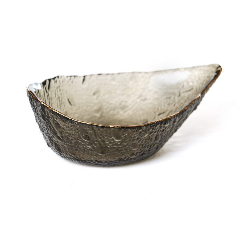 סט 6 קעריות טיפה 14.5/10.5 ס"מ זכוכית גבישי פס זהב/ אפורה עומק 5.5 ס"מ - NVL