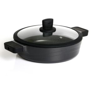 סיר 20 ס"מ/ 2.5 ליטר שחור מכסה זכוכית OSLO ציפוי שיש 4 שכבות יציקת אלו. קוצ'ינה מיה
