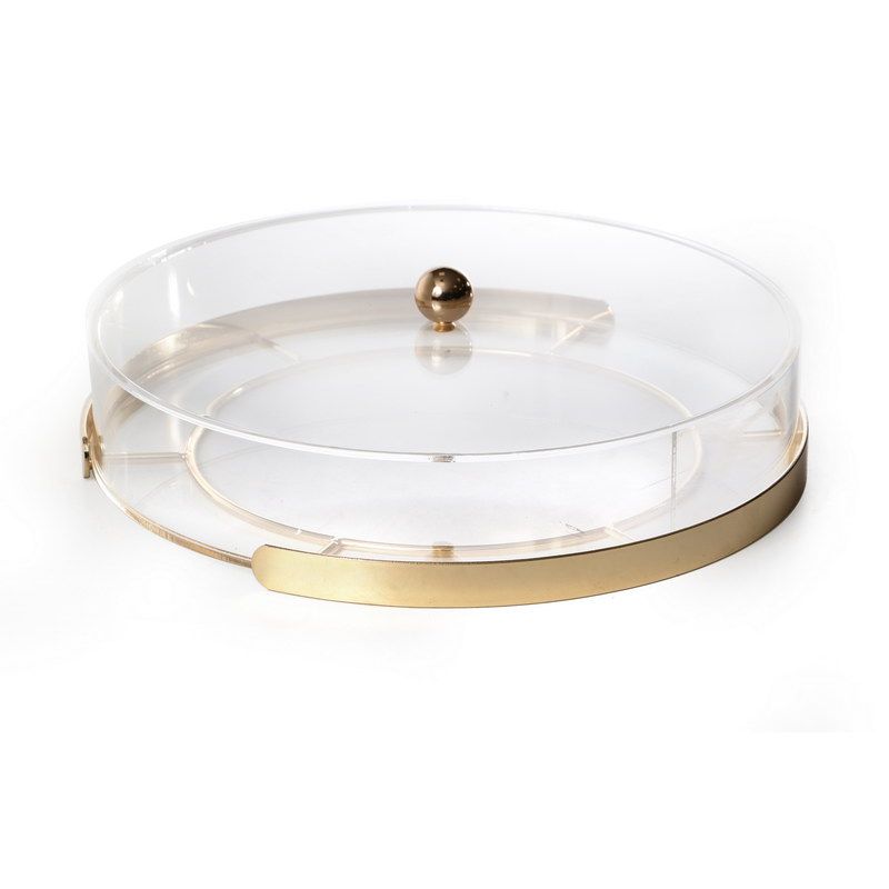 קברט עגול מחולק ל 4 ופעמון אקרילי שקוף/ מסגרת זהב קוטר 30 ס"מ גובה 12 ס"מ