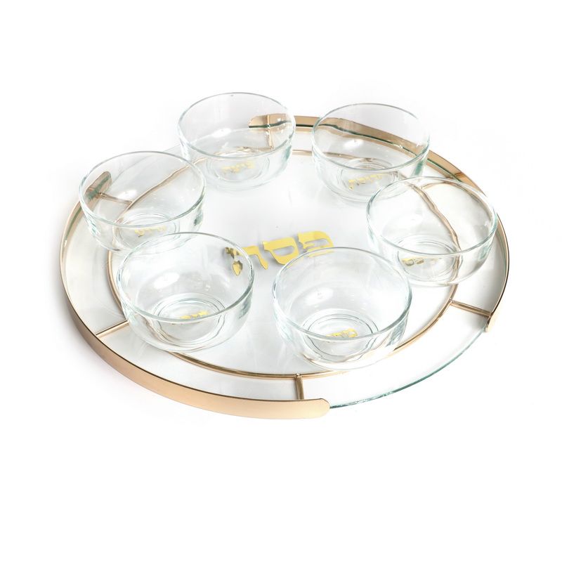 קערה לפסח זכוכית מסגרת זהב קוטר 40 ס"מ קעריות זכוכית גובה 6.5 ס"מ - NVL