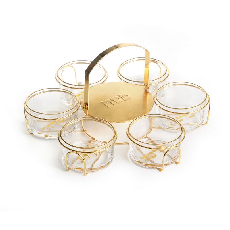 קערה לפסח קעריות זכוכית עגולות על מתקן מתכת זהב קוטר 31.5 גובה 15.5 ס"מ