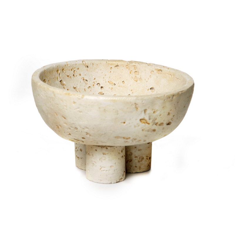 קערית טרוורטין עגול על רגל קוטר 20 גובה 13 ס"מ