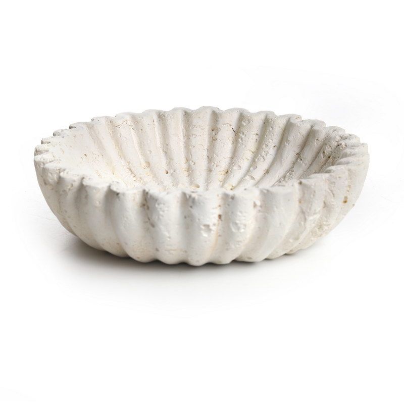 קערת דמוי טרוורטין כותר פרח קוטר 25.5 גובה 6 ס"מ - NVL