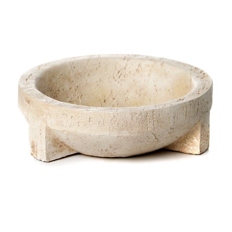 קערת דמוי טרוורטין עגולה על בסיס קוטר 20.3 גובה 6.4 ס"מ