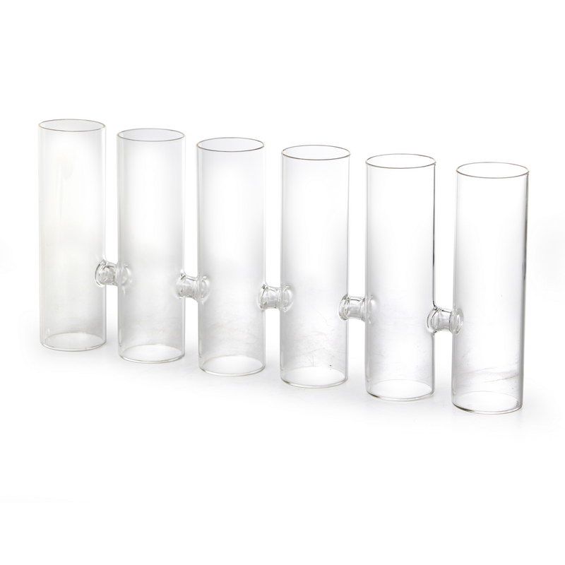 שישיית אגרטלי זכוכית לפרח מחוברים שקופה/ פס זהב 37/4.5 גובה 15 ס"מ - NVL