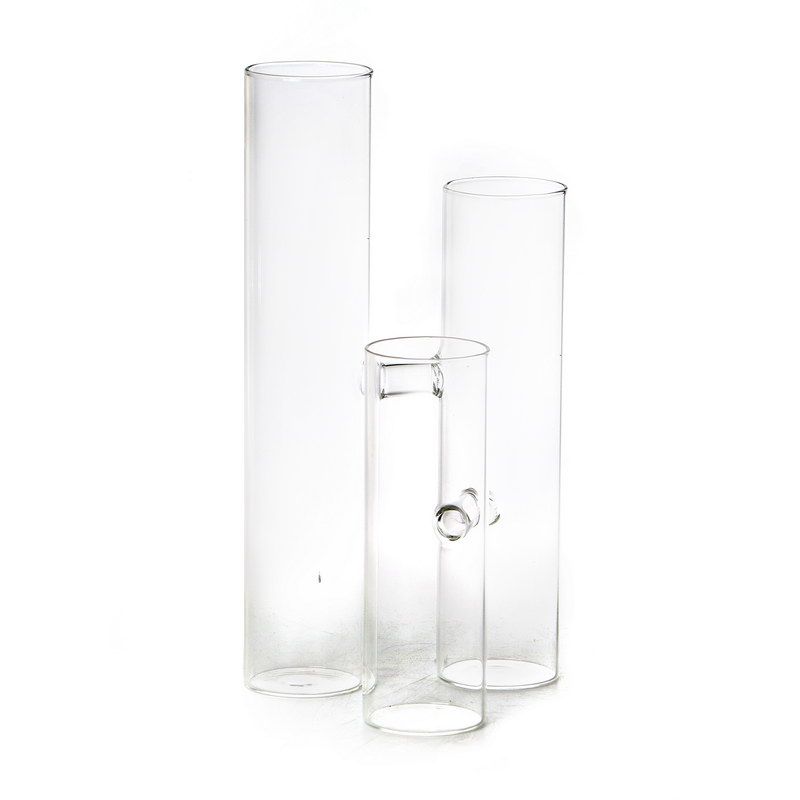 שלישיית אגרטלי זכוכית לפרח מחוברים שקופה קוטר 13 ס"מ גובה 25.3 ס"מ