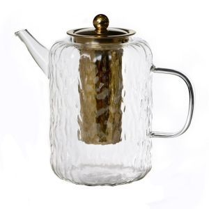 2.0 ליטר קנקן תה זכוכית שקופה מסנן נירוסטה כסף