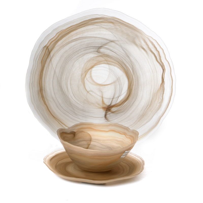 Ella amber מערכת אוכל זכוכית 18 חלקים קטרים 27/21/16.5 ס"מ צלחת למרק עומק 7.2 ס"מ