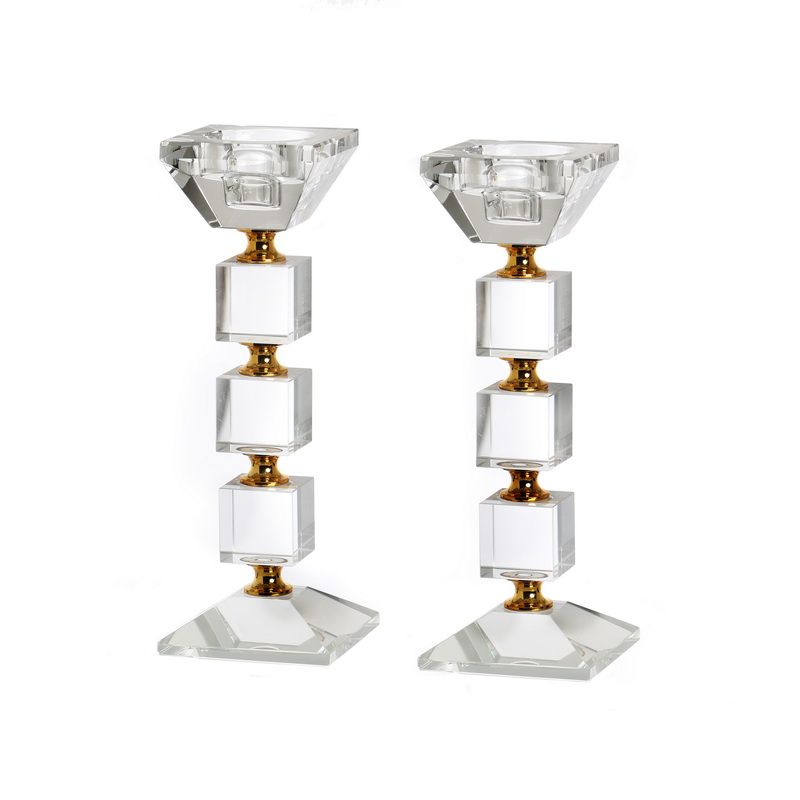 h20 זוג פמוטי קריסטל ריבועים/זהב