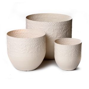 סט 3 מעמדי עציץ טרקוטה כפרי גבהים 29/24/20 ס"מ קטרים 35/27/19.5 ס"מ אלומיניום