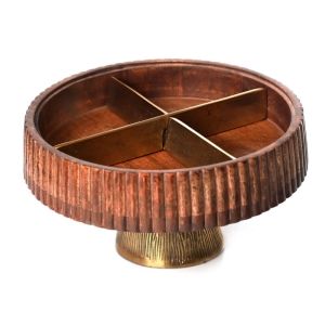 קופסה מחולקת על רגל ומכסה ענתיק גולד פסים גובה 17.5 קוטר 30 ס"מעץ