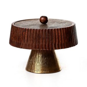קופסה על רגל ומכסה ענתיק גולד פסים גובה 15 קוטר 20 ס"מעץ