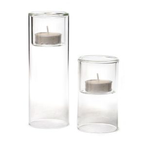 סט 2 מעמדי זכוכית שקופה לנר גבהים 10/16 ס"מ קוטר 6 ס"מ