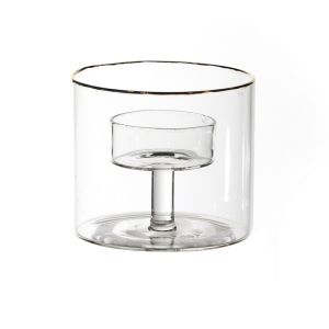 זוג מעמד לנר זכוכית שקופה קריסטל סיליקון למניעת החלקה 50 מ"ל קריסטל קוטר 4.5 ס"מ גובה 8 ס"מ