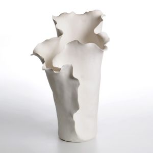 אגרטל קרמיקה רומי לבן בעבודת יד עמיד למים גובה 38.5 ס"מ 29/24.5 ס"מ