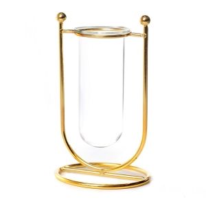 אגרטל זכוכית בסטנד מתכת זהב /שקופה גובה 16.5 ס"מ