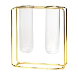 זוג אגרטלי זכוכית בסטנד מתכת זהב שקופה 20/7 ס"מ גובה 21 ס"מ