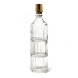 דיקנטר 3 קומות זכוכית פסים שקופה מכסה ופס זהב 360 מ"ל ו2 כוסות 310 מ"ל