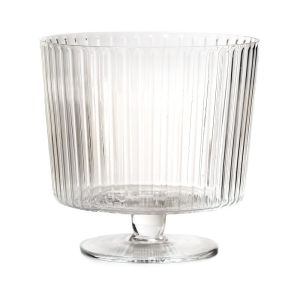 קערת הגשה על רגל זכוכית שקופה 1600 מ"ל קוטר 16 ס"מ גובה 18 ס"מ זכוכית ניפוח בעבודת יד