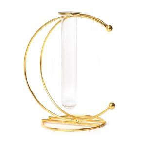 אגרטל זכוכית בסטנד ירח מתכת זהב /שקופה 14 ס"מ גובה 17.4 ס"מ
