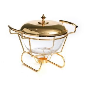 מרקיה זכוכית חימום עגולה 2.7 ליטר מכסה וסטנד מתכת זהב 32.8/23.1 ס"מ גובה 24.5 ס"מ