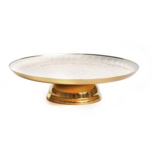 מגש על רגל ציפוי פנינה /עלים קוטר 31.5 ס"מ גובה 8 ס"מ אלומיניום