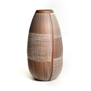 אגרטל חום/ פסים לבנים גובה 35.5 קוטר 23 ס"מ אלומיניום