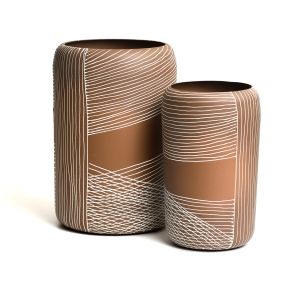 סט 2 אגרטלים חום/ פסים לבנים גובה 28.5 קוטר 21 ס"מ אלומיניום