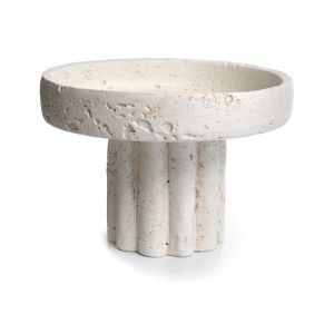 מגש על רגל דמוי טרוורטין עגול על רגל עמודים קוטר 17.8 גובה 12 ס"מ