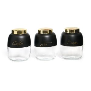 סט מזון לחיצת ואקום 3 צנצנות זכוכית שחור מט /זהב 900 מ"ל תה קפה סוכר