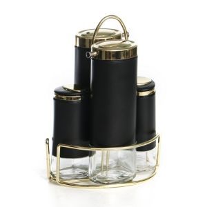 סט מלח פלפל שמן חומץ/ שחור מט על מעמד נירוסטה זהב 115/235 מ"ל